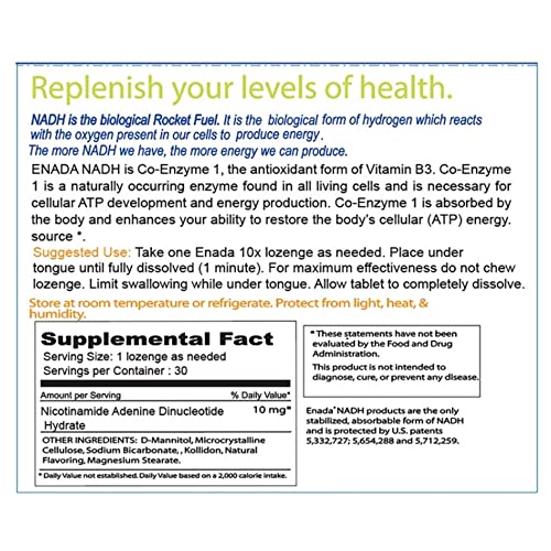 ENADA 10X Suplemento NADH com Fórmula de Ação Rápida para Estilo de Vida Ativo | Estimulante Natural de Energia ideal para Jet Lag e Desempenho Atlético