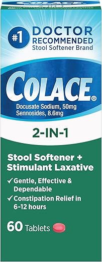 DOCTOR RECOMMENDED: Colace 2-In-1 Stool Softener Plus Stimulant Laxative is the #1 doctor recommended brand for gentle and effective constipation relief. With its trusted reputation, you can rely on this product to provide the relief you need.