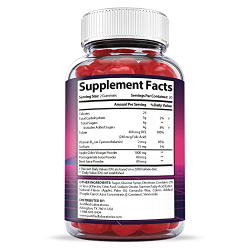 INGREDIENTES ADICIONADOS: Nossa mistura exclusiva de gomas de vinagre de maçã contém beterraba, vitamina B12 e ácido fólico.