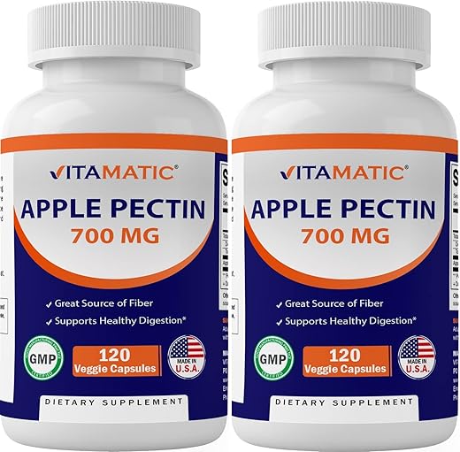 A Vitamatic 2 Pack Apple Pectin 700 mg 120 Vegetarian Capsules is a dietary supplement that promotes healthy intestinal health. This product contains apple pectin, a soluble fiber that is naturally found in apples. Apple pectin is known for its ability to support healthy digestive function and maintain a healthy gastrointestinal tract. By including this supplement in your daily routine, you can improve your digestive health and experience the benefits of a well-functioning digestive system.