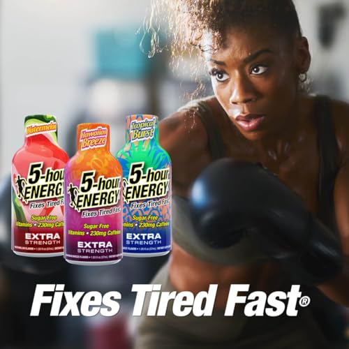 5-Hour Energy Extra Strength Shots Variety Pack, 18 Count (1.93 fl oz) – Extra Strength Tropical Burst, Hawaiian Breeze, Watermelon Flavors