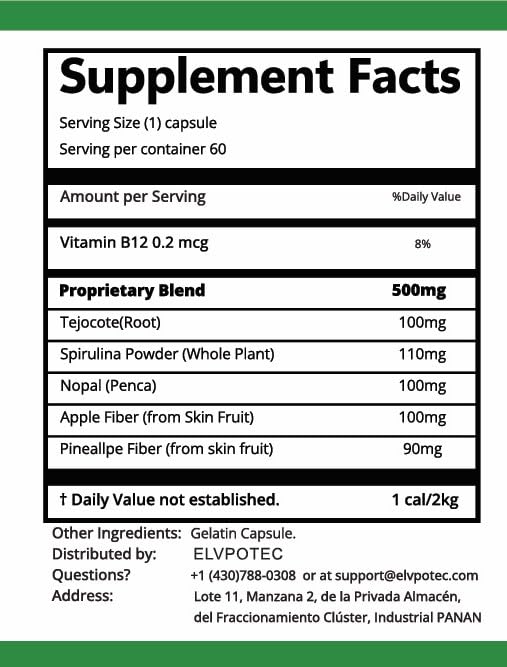 ELVPOTEC – Mexican 60 Capsules – 2 Month Supply from 100% Natural Ingredients for Your Perfect Body | Non-GMO