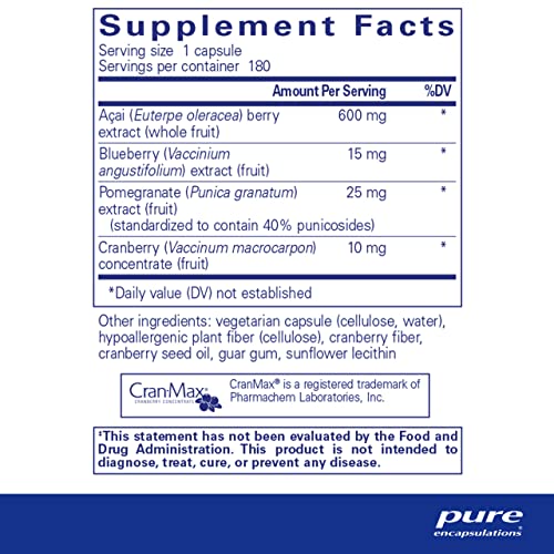 O Pure Encapsulations Acai 600 oferece suporte antioxidante, ajudando a proteger as células contra os danos causados pelos radicais livres.