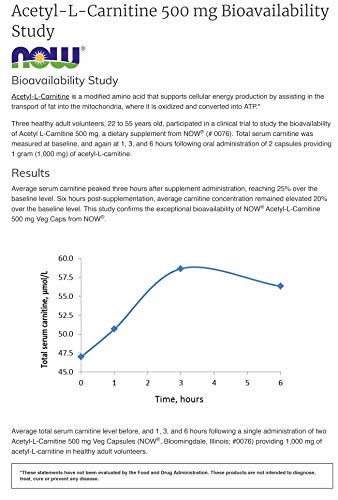 O NOW Foods Now Acetyl L Carnitine 500mg, 360 Veg Capsules – Non-GMO ACL 500 mg Caps é uma forma altamente biodisponível de carnitina que pode atravessar a barreira hematoencefálica, onde ajuda a gerenciar o estresse oxidativo típico, suporta a função mitocondrial e ajuda a manter a atividade normal dos neurotransmissores. Cada porção contém 1000mg de Acetil-L-Carnitina (ALC), o que equivale a 2 cápsulas de 500mg, podendo ser consumido de 1 a 2 vezes ao dia.