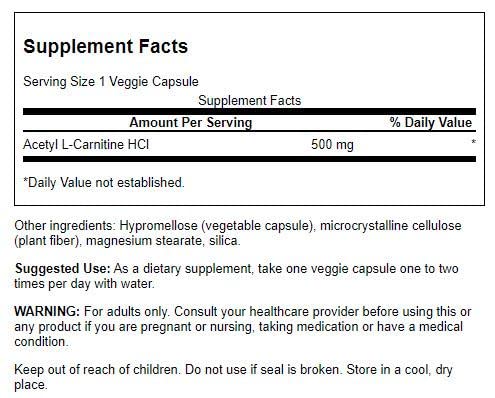 BRAIN & MUSCLE SUPPORT: O suplemento de Acetyl-L-Carnitine da Swanson foi formulado para ajudar a promover a saúde muscular e a função cognitiva. Ele também pode ajudar a proteger todo o sistema nervoso utilizando ingredientes naturais em que você pode confiar.