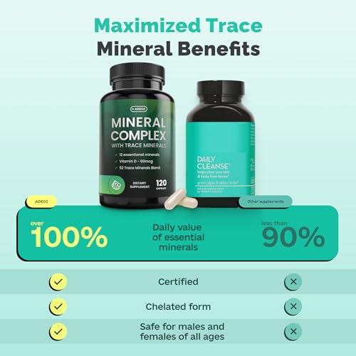ADEO2 é um suplemento de minerais completo e poderoso que cuida de todo o seu corpo. Com uma fórmula exclusiva de 52 minerais traços complexos em forma quelada, este suplemento é 100% orgânico e natural. Cada frasco contém 120 cápsulas, proporcionando um suprimento duradouro de minerais essenciais para o seu corpo. Adequado para homens e mulheres de todas as idades, este suplemento é livre de OGM e vegano. Durante o estudo, nenhum efeito colateral foi relatado, tornando-o seguro para uso diário.