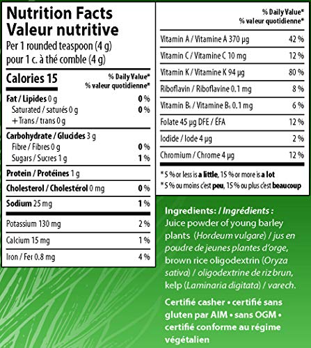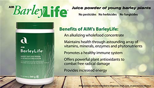 BarleyLife – Tamanho Família (12.7 oz) Pó de Grama de Cevada é um produto que ajuda a manter a saúde do corpo inteiro e um sistema imunológico saudável. Além disso, ele fornece energia e benefícios de enzimas vivas, como a superóxido dismutase, e possui um perfil completo de aminoácidos. Com antioxidantes únicos e poderosos provenientes de plantas, o BarleyLife é cultivado em ambientes limpos, verdes e intocados, combinado com arroz integral, alga marinha e clorofila natural. Seus nutrientes estão em proporções naturais e possui um pH neutro de 7.0.