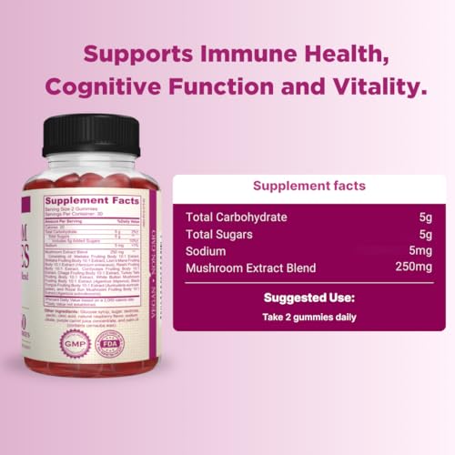 Aproveite os benefícios dos extratos de cogumelo em uma forma deliciosa e fácil de consumir, em formato de goma com sabor de framboesa. Feitas com ingredientes naturais, sem sabores ou cores artificiais, você pode ter confiança nos ingredientes de nossas Gomas de Cogumelo.