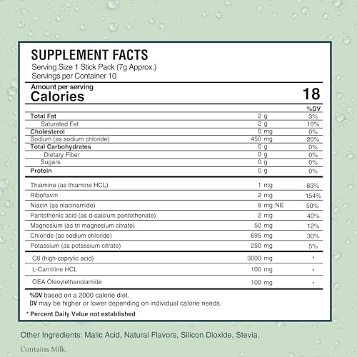 Além disso, cada porção contém ácido caprílico (C8), um triglicerídeo de cadeia média potente que proporciona um impulso cognitivo. Ideal para aqueles que seguem uma dieta cetogênica, o C8 ajuda a melhorar a clareza mental e o foco durante os períodos de jejum.