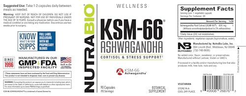 NutraBio Ashwagandha KSM-66 Suplemento Herbal para Melhor Saúde Geral do Corpo, 600mg – 90 Cápsulas Vegetais