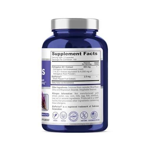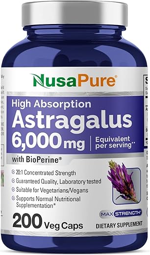 O NusaPure Astragalus 6000mg por Porção é um suplemento de alta absorção que oferece uma dose equivalente a 6.000mg de Astragalus por porção, com a adição de Bioperine para melhorar a absorção. Cada frasco contém 200 cápsulas vegetarianas, com 2 cápsulas por porção de pó de raiz de Astragalus. Nossas formulações são cuidadosamente elaboradas com ingredientes de qualidade e atenção aos detalhes. Cada frasco fornece 100 porções, garantindo um suprimento duradouro. Este suplemento de Astragalus é produzido em uma instalação registrada no cGMP, seguindo rigorosos padrões de fabricação e origem.