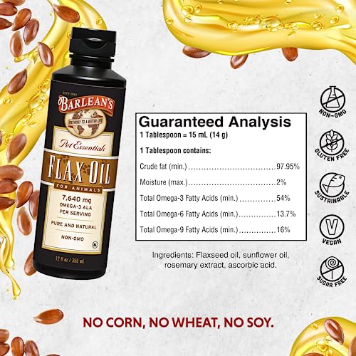 Além disso, este suplemento é especialmente formulado para melhorar a saúde da pele e da pelagem dos animais de estimação. Nem sempre os animais recebem todas as nutrições necessárias apenas com a dieta alimentar, o que pode levar ao desenvolvimento de caspa e pele seca e com coceira. O óleo de linhaça para animais de estimação da Barlean é vegetariano, não transgênico e livre de glúten, sendo facilmente digerido e bem tolerado pela maioria dos animais.