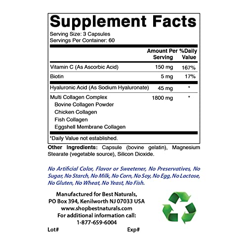 4. Fabricado nos EUA: O Best Naturals Multi Collagen Pills é orgulhosamente fabricado nos Estados Unidos, em uma instalação registrada pela FDA e em conformidade com as boas práticas de fabricação (GMP). Isso garante que o produto seja produzido seguindo os mais altos padrões de qualidade e segurança.