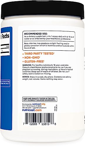 O Nutricost Beta Alanine Powder é fabricado em uma instalação registrada na FDA e em conformidade com as Boas Práticas de Fabricação (GMP), garantindo a segurança e a qualidade do produto.