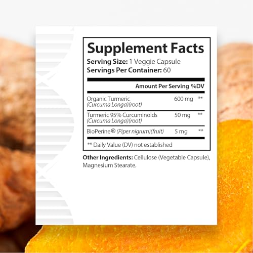 Ultimate Turmeric Supplement – 60 Capsules 600 mg – Pure, natual Sources, Potent
