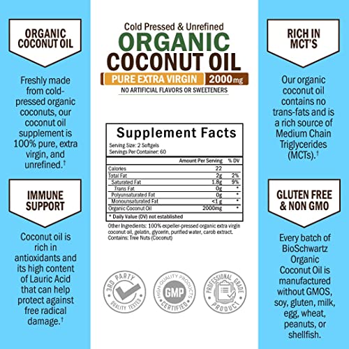 Óleo de Coco em Cápsulas 2000mg – Puro Orgânico Extra Virgem Não Refinado Prensado a Frio Rico em MCT