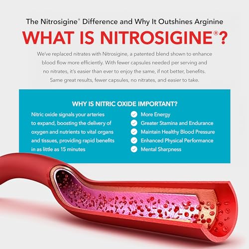 MELHORA A CLAREZA MENTAL E O DESEMPENHO: Nosso suplemento de fluxo sanguíneo para homens e mulheres também pode ajudar a aumentar a clareza mental, o humor e apoiar a eficiência metabólica. Nossa fórmula única tem a capacidade de ajudar no nível celular, o que significa que você se sente bem, parece bem e, o mais importante, está saudável por dentro e por fora. O impulsionador de óxido nítrico Nitrosigine apoiará seu bem-estar geral.