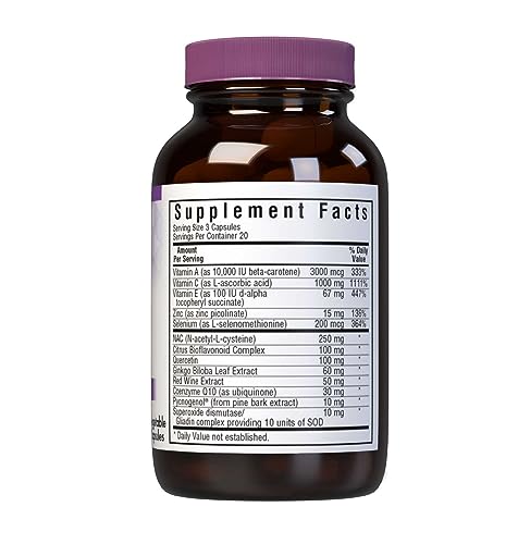 Este produto é uma fórmula de cápsulas vegetarianas BlueBonnet Super Antioxidant que contém uma ampla variedade de poderosos antioxidantes. Essas cápsulas são fáceis de engolir, permitindo uma máxima assimilação e absorção pelo organismo. Além disso, cada cápsula contém 200% da ingestão diária recomendada de vitamina A, fornecendo um impulso adicional para a saúde.