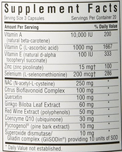 Com 60 cápsulas por frasco, este produto oferece um suprimento de antioxidantes de alta qualidade para um mês inteiro. As cápsulas são brancas e fáceis de engolir, tornando-as adequadas para pessoas com dificuldades de deglutição.