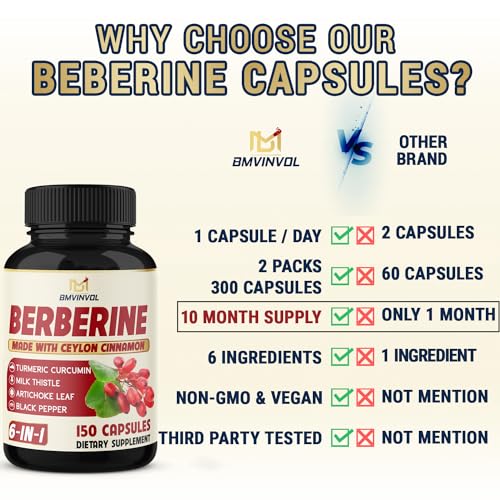 O 2 Pack Berberine HCl- Plus Ceylon Cinnamon, Turmeric, Milk Thistle, Artichoke, Black Pepper, Berberine HCI Root Supplements Pills – Immune System é um suplemento alimentar de alta qualidade que combina uma variedade de ingredientes naturais para promover a saúde do sistema imunológico. Cada frasco contém 150 cápsulas, com um total de 300 cápsulas no pacote. Recomenda-se tomar uma cápsula por dia para obter os benefícios máximos.