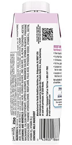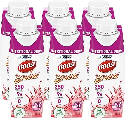 BOOST Breeze é uma bebida nutricional líquida e transparente com sabor de frutas que fornece 9 g de proteína, 250 calorias e 19 vitaminas e minerais para ajudar a preencher lacunas nutricionais. Com 9 g de proteína de soro de leite de alta qualidade e 19 vitaminas e minerais, incluindo 8 vitaminas do complexo B, o BOOST Breeze oferece excelentes benefícios nutricionais em uma bebida líquida transparente e com sabor de frutas. As bebidas nutricionais BOOST fornecem ao seu corpo proteínas, vitaminas e calorias para ajudar a manter a energia normal. Aumente sua nutrição com shakes e bebidas proteicas nos sabores chocolate, baunilha e frutas. As bebidas BOOST Breeze têm a nutrição de que você precisa e estão disponíveis nos sabores laranja, pêssego e frutas silvestres. A família de bebidas nutricionais BOOST oferece uma variedade de produtos para atender às suas necessidades, seja você precisando de mais proteínas, menos açúcares, mais calorias, menos calorias ou simplesmente uma ótima nutrição para o dia a dia.