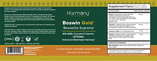O Boswin Gold Liposomal da Harmony Nutraceuticals é um suplemento nutracêutico excepcionalmente formulado para melhorar a saúde das articulações e promover o bem-estar geral. Combinando os benefícios do Boswellia, também conhecido como Frankincense Indiano, com a potência máxima do extrato de Boswellia fortificado com Cúrcuma orgânica de espectro completo, este produto oferece uma solução eficaz para reduzir a inflamação, aliviar a dor e apoiar o sistema respiratório, digestivo e imunológico.
