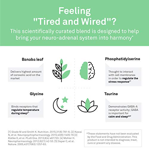 Calm CP é um suplemento projetado para ajudar a reduzir o cortisol e fornecer ingredientes importantes para a calma e o descanso. Esta fórmula única combina extrato de folha de banaba (padronizado para um impressionante 18% de ácido corosólico) com um suplemento de glicina, taurina e fosfatidilserina. O suporte saudável ao cortisol também pode ajudar o corpo a combater a gordura abdominal associada aos níveis elevados de cortisol na hora de dormir. Em um estudo sobre a eficácia do Calm CP, os participantes foram pré-selecionados por apresentarem níveis elevados de cortisol. O Calm CP mostrou reduzir o cortisol (cortisol médio diário) em 17%. Além disso, os suplementos de glicina ajudam o corpo a regular a temperatura durante a noite, enquanto a taurina promove uma função saudável do GABA. O GABA é o principal neurotransmissor inibitório que ajuda a preparar o cérebro para noites de descanso, sinalizando ao nosso corpo que é hora de acalmar. Confie em Calm CP, um produto de qualidade profissional, confiável por milhares de profissionais de saúde. A NeuroScience formula suplementos de saúde do cortisol e outros produtos exclusivamente com base em pesquisas revisadas por pares. Todos os produtos são fabricados nos EUA em uma instalação compatível com CGMP.