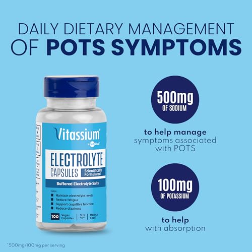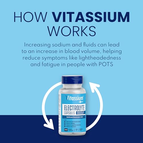 Projetadas com os POTSies em mente, as Cápsulas de Eletrólitos Vitassium são essenciais para o gerenciamento dietético dos sintomas associados à Síndrome de POTS e são um item indispensável em seu kit de ferramentas para a Síndrome de POTS. Embora o aumento do consumo de sódio possa ajudar a controlar os sintomas da Síndrome de POTS, ele não é um remédio, tratamento ou cura.