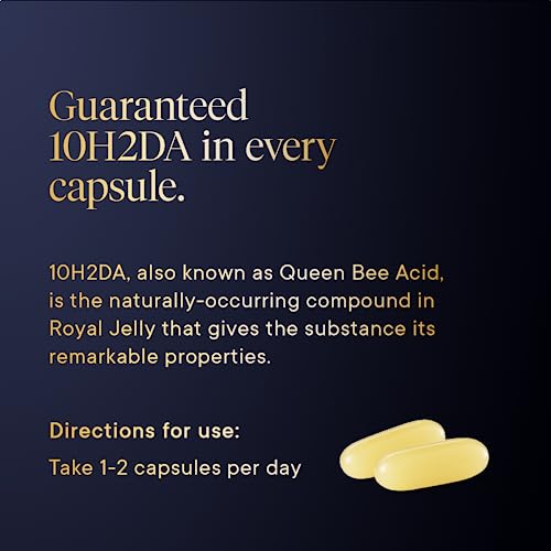 Aproveite a saúde da colmeia: As Cápsulas de Geleia Real Manuka Health contêm 1000 mg de 10H2DA, o composto associado às notáveis propriedades de bem-estar da geleia real e o marcador científico para a potência da geleia real.