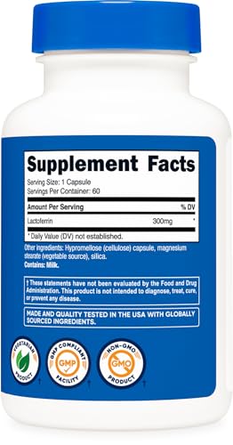 O Suplemento de Lactoferrina Nutricost é um suplemento alimentar projetado para apoiar sua rotina diária. Cada frasco contém 60 cápsulas, fornecendo um suprimento de 60 porções com 300mg por porção. Este suplemento é adequado para vegetarianos, não contém organismos geneticamente modificados (OGM) e é livre de glúten.