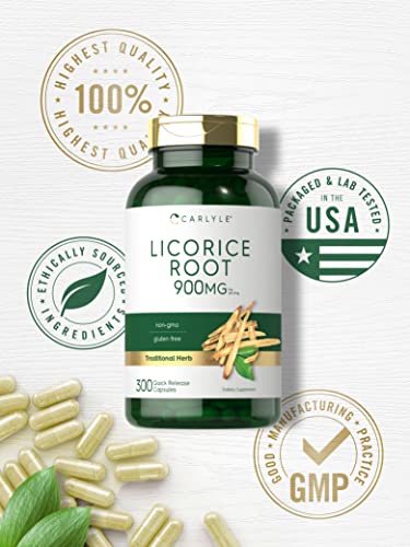Licorice Root Capsules 900mg | 300 Count | Root Extract Supplement | Non-GMO, Gluten Free