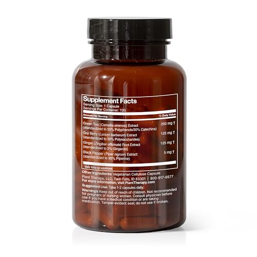 Plant Therapy Metabolism Boost Herbal Supplement Capsules, Otimiza o Metabolismo de Gorduras. Este suplemento é formulado com ingredientes naturais cuidadosamente selecionados para apoiar a perda de peso e promover um metabolismo saudável. Combinando os benefícios do Chá Verde, Gengibre e Pimenta Preta, este suplemento ajuda a aumentar a taxa metabólica, melhorar a digestão e promover a absorção de nutrientes. Além disso, a adição de Goji Berries e outros antioxidantes fornece energia natural para impulsionar seu estilo de vida ativo. Cada extrato botânico incluído nesta fórmula é padronizado para garantir a quantidade ideal de seus compostos benéficos, como polifenóis, catequinas, polissacarídeos, gingeróis e piperina. A Plant Therapy se orgulha de produzir todos os seus suplementos herbais em sua moderna instalação em Twin Falls, ID, nos Estados Unidos, garantindo qualidade e potência máximas. Além disso, todos os produtos são testados por terceiros para garantir a pureza dos ingredientes, potência, ausência de metais pesados e conteúdo microbiano. A VigorLife recomenda este produto por seus benefícios comprovados e qualidade excepcional.