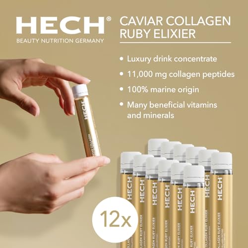 HECH Caviar Collagen Ruby Elixier é um suplemento de beleza revolucionário que combina os melhores ingredientes com a melhor ciência para ajudá-lo a parecer e sentir-se absolutamente incrível. Este produto é conhecido como o número um em anti-envelhecimento, pois contém uma quantidade ultra-densa de 11.000 mg de peptídeos de colágeno marinho com polifenóis para combater os radicais livres que danificam o colágeno. Além disso, possui um complexo bioativo de 9 nutrientes vita-minerais que auxiliam na regeneração das células.