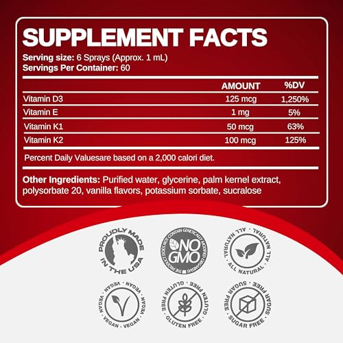 Além de promover a saúde óssea, a Vitamina D3 com K2 também suporta a saúde do coração e do sistema imunológico. Essas vitaminas essenciais também podem ajudar na função muscular ideal e fortalecer os ossos. Além disso, a Vitamina D3 com K2 é fundamental para melhorar o humor, proporcionar uma melhor qualidade de sono e aumentar a clareza mental, permitindo que você domine o dia. Nosso produto é livre de transgênicos, vegano, sem glúten e fabricado nos EUA!