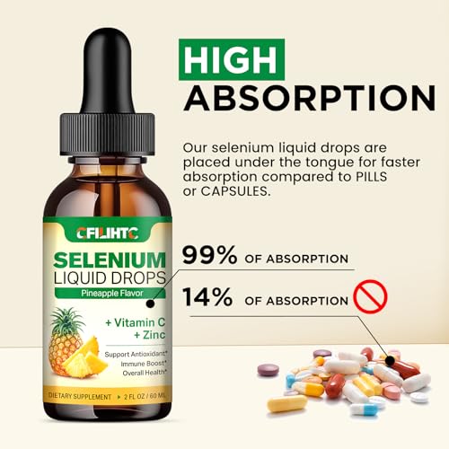 Suplemento de Selênio Líquido, 200mcg com Vitamina C – Suporte Imunológico Completo