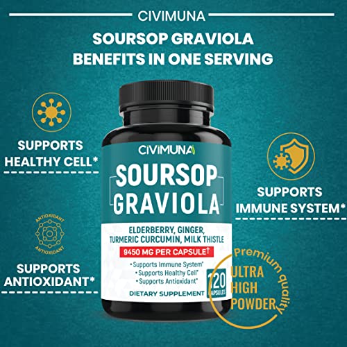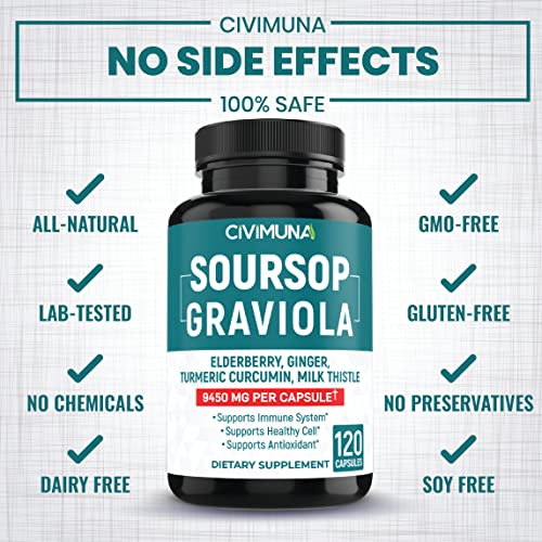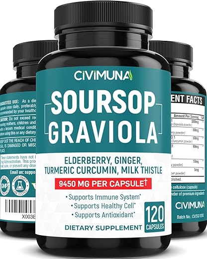 As cápsulas de extrato de graviola Soursop são uma maneira conveniente e eficaz de obter os benefícios de uma variedade de ingredientes premium. Cada porção dessas cápsulas fornece a equivalência de 9450mg de 10+ ingredientes premium, incluindo graviola, sabugueiro, curcumina de açafrão, gengibre, cardo de leite, cereja azeda, cranberry, açaí, goji berry, noni e pimenta preta.
