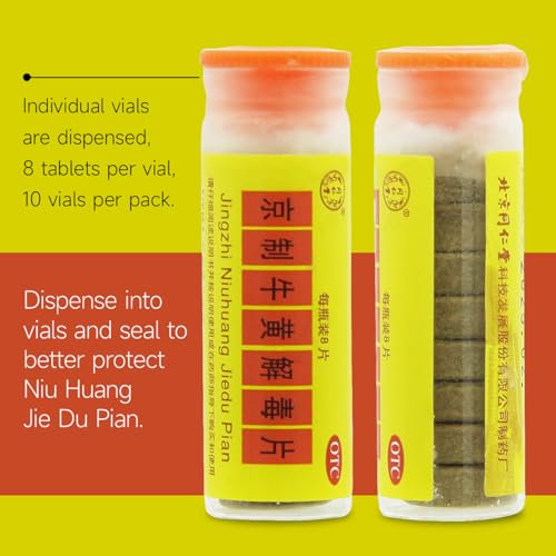O Jingzhi NIU-Huang-Jie-Du-Pian 80 Tablets (8 Tablets × 10 Vials) é um suplemento herbal fabricado pela Tongren Tang em Pequim, China. Este produto é 100% herbal e conhecido por sua autenticidade. Sua fórmula clássica de ervas chinesas é composta por ingredientes naturais poderosos que melhoram o sistema imunológico. Além disso, este suplemento auxilia na saúde digestiva, aliviando a constipação e promovendo o suporte imunológico.