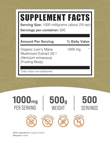 1. Aumente sua ingestão nutricional: O pó de extrato de cogumelo Lion’s Mane orgânico da BulkSupplements.com é uma maneira fácil de adicionar nutrientes essenciais à sua dieta diária, promovendo uma saúde geral melhorada.