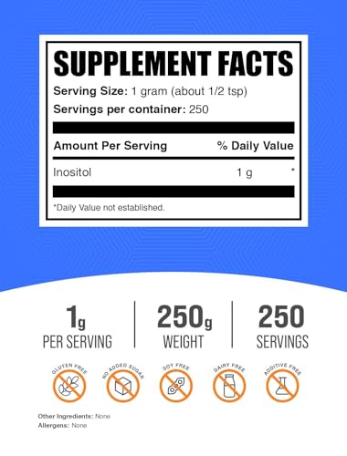Recomenda-se tomar 1000mg de pó de Inositol por dia, misturado em água ou suco, preferencialmente com uma refeição. Consulte um profissional de saúde antes de iniciar qualquer suplementação.