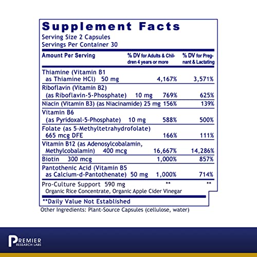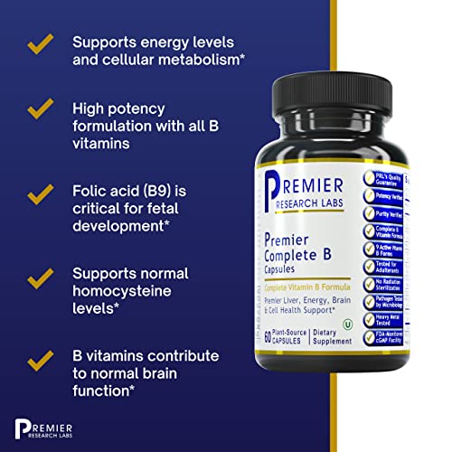 Garanta uma ingestão adequada de vitaminas B para um metabolismo energético ótimo, síntese hormonal e transmissão de impulsos nervosos com a fórmula da Premier Research Labs.