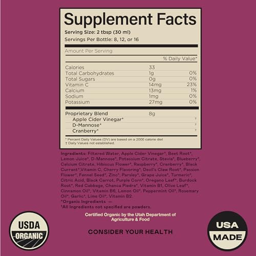 Complete Natural Urinary Tract Complete 12oz – Suplemento Líquido para a Saúde do Trato Urinário com Cranberry Orgânico, D-Manose, Beterraba, Semente de Funcho e Cúrcuma