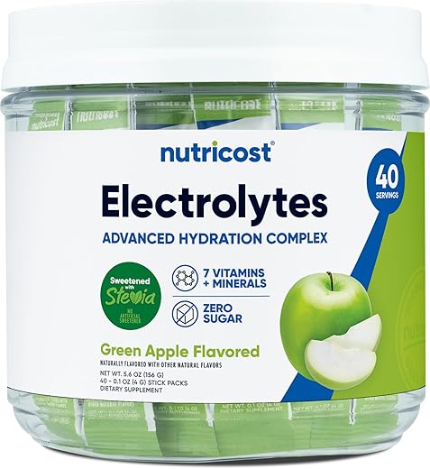 Aproveite o delicioso sabor de maçã verde do Nutricost Electrolytes Complex e mantenha-se hidratado de forma agradável. Com zero açúcar, essa opção é perfeita para repor eletrólitos sem adicionar calorias extras à sua dieta. Os stickpacks de eletrólitos são adoçados naturalmente com extrato de estévia, proporcionando um sabor agradável sem adoçantes artificiais.