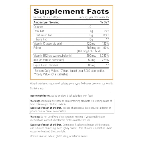 Este complexo de ferro também apresenta frações líquidas de fígado e vitaminas C, folato e B12. Esses ingredientes adicionais ajudam a melhorar a absorção do ferro pelo organismo, garantindo que você obtenha o máximo benefício de cada dose.