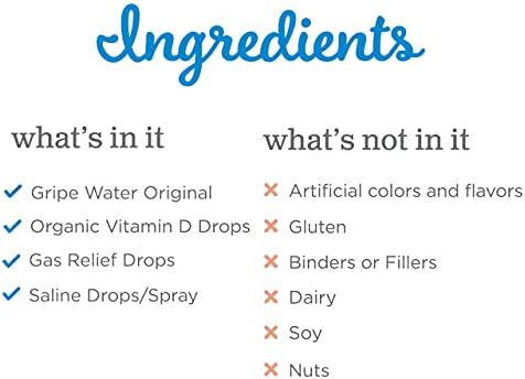 A coleção inclui quatro dos nossos produtos mais populares para o bem-estar do bebê. O Gripe Water e os Gas Relief Drops ajudam a acalmar problemas de estômago, enquanto as Vitamin D Drops promovem um crescimento saudável. Além disso, as Saline Drops ajudam a aliviar os sintomas de resfriados.