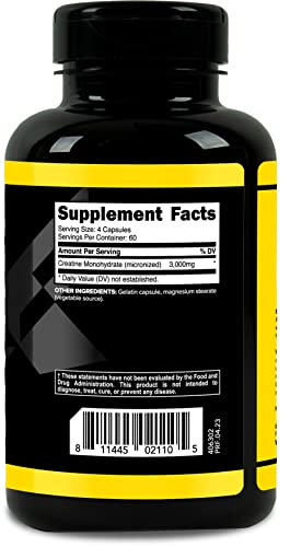 – Sugestão de Uso: Para obter os melhores resultados, tome 4 cápsulas de PrimaForce Creatine Monohydrate com 240-360 ml de água, de preferência antes do treino. Consulte um profissional de saúde antes de iniciar qualquer programa de suplementação.