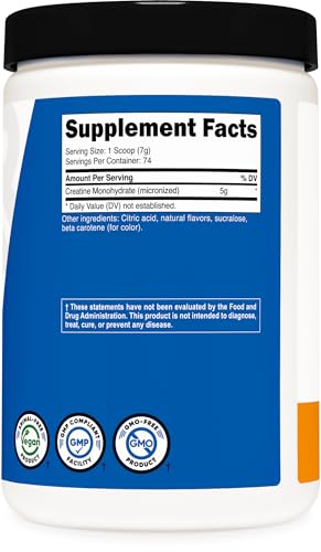 Conheça o Nutricost Creatine Monohydrate Powder (Mandarin Orange, 500 Gram), um suplemento de creatina micronizada que oferece uma experiência conveniente e saborosa para o seu consumo diário de creatina. Com seu delicioso sabor de tangerina, este produto é uma adição agradável à sua rotina.