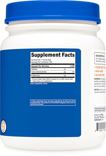 O Nutricost D-Mannose Powder é um suplemento alimentar em pó que contém 2 gramas de D-Manose por porção, totalizando 250 porções em cada frasco de 500 gramas. A D-Manose é um açúcar natural que pode ajudar a manter a saúde do trato urinário.