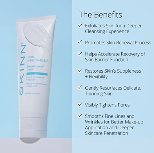 Gentle Exfoliating: Expanda sua experiência facial em casa com o Tratamento Diário de Esfoliação Suave DermAppeal. Apresenta uma esfoliação suave, porém eficaz, fornecida por grânulos de semente de jojoba derivados de plantas. Formulado com Ácido Lático e uma mistura de Enzimas de Frutas, o DermAppeal Daily é a adição ideal à sua rotina diária para ajudar a acelerar a recuperação da função de barreira da pele e promover o processo de renovação.