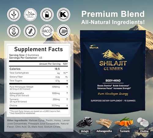 Testado em laboratório e de qualidade premium, o DLNIA Pure Himalayan Shilajit Gold Gummy é “Testado em Laboratório”, livre de metais pesados, enchimentos e aditivos nocivos. Produzido em sua forma mais autêntica, não contém açúcar adicionado, amido de milho, xarope de glicose, corantes artificiais ou goma. É completamente vegano, natural e não transgênico.