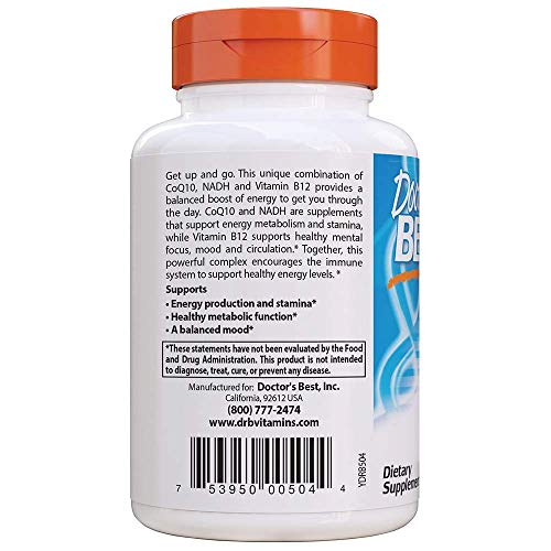 O Doctor’s Best Energy CoQ10, NADH é uma combinação poderosa de antioxidantes que impulsionará seu sistema imunológico e apoiará níveis saudáveis de energia.* Com CoQ10, NADH e vitamina B12, este suplemento fornece um impulso equilibrado de energia.* O CoQ10 e o NADH são suplementos que suportam o metabolismo energético e a resistência, enquanto a vitamina B12 promove foco mental saudável, humor e circulação.* Este complexo poderoso fortalece o sistema imunológico para apoiar níveis saudáveis de energia.*